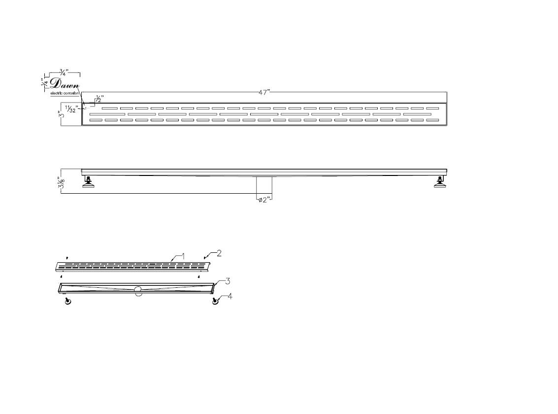 Dawn Amazon River Series Shower Linear Drain, 47"
