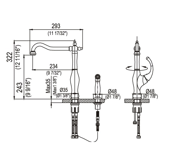 Dawn Single-Lever Kitchen Faucet with Side Spray, Chrome