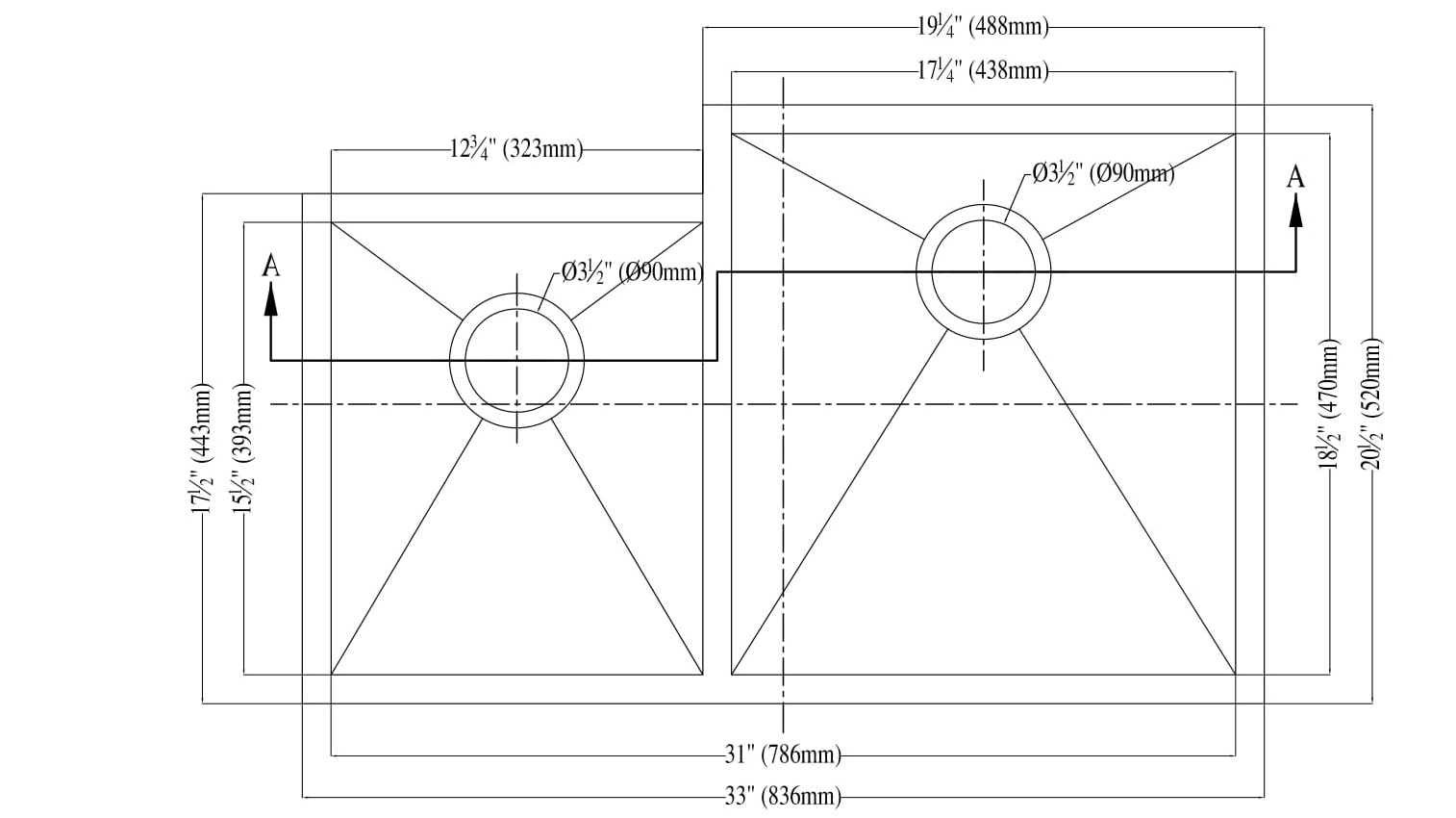 Dawn Square Double Bowl Sink (Small Bowl on Left)