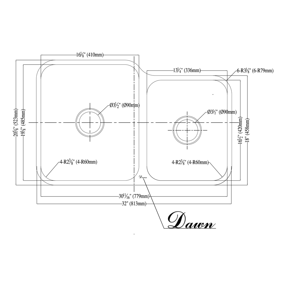 Dawn Double Bowl Sink (Small Bowl on Right)