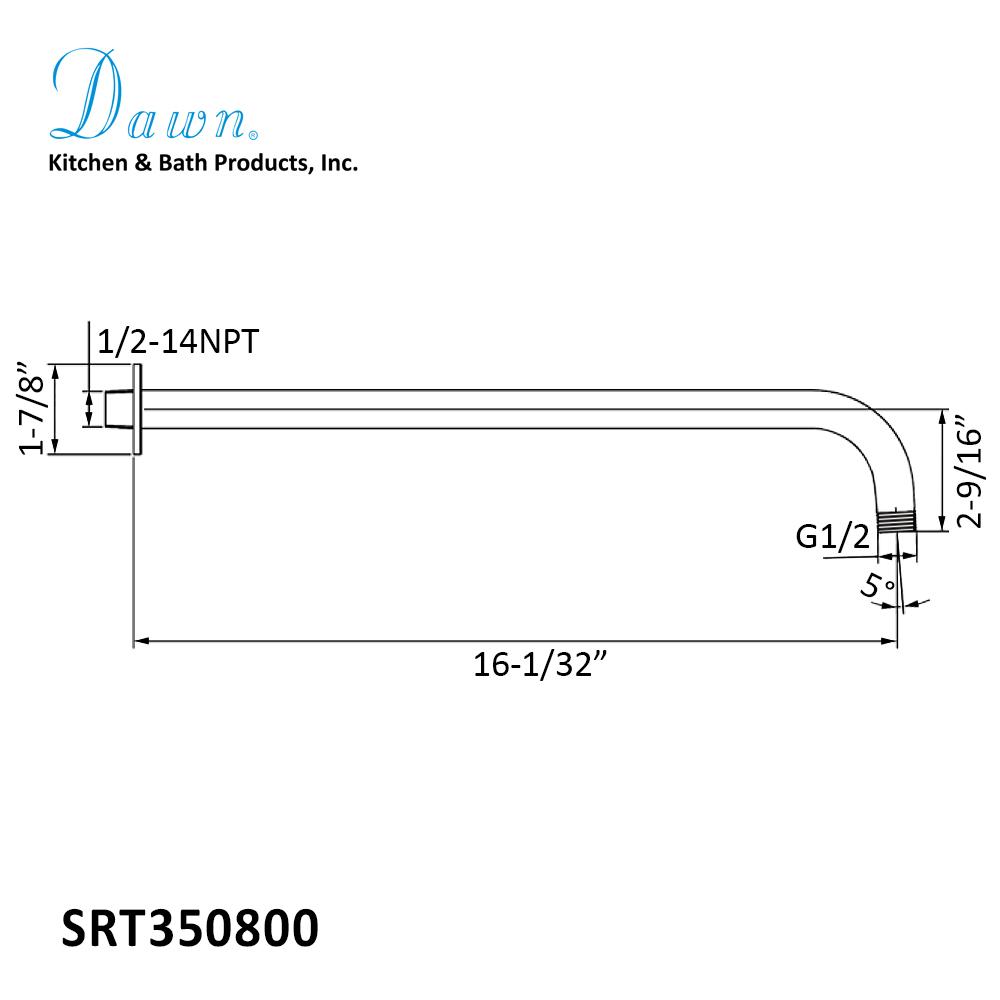 16" Wall Mount Shower Arm and Flange, Matte Gold