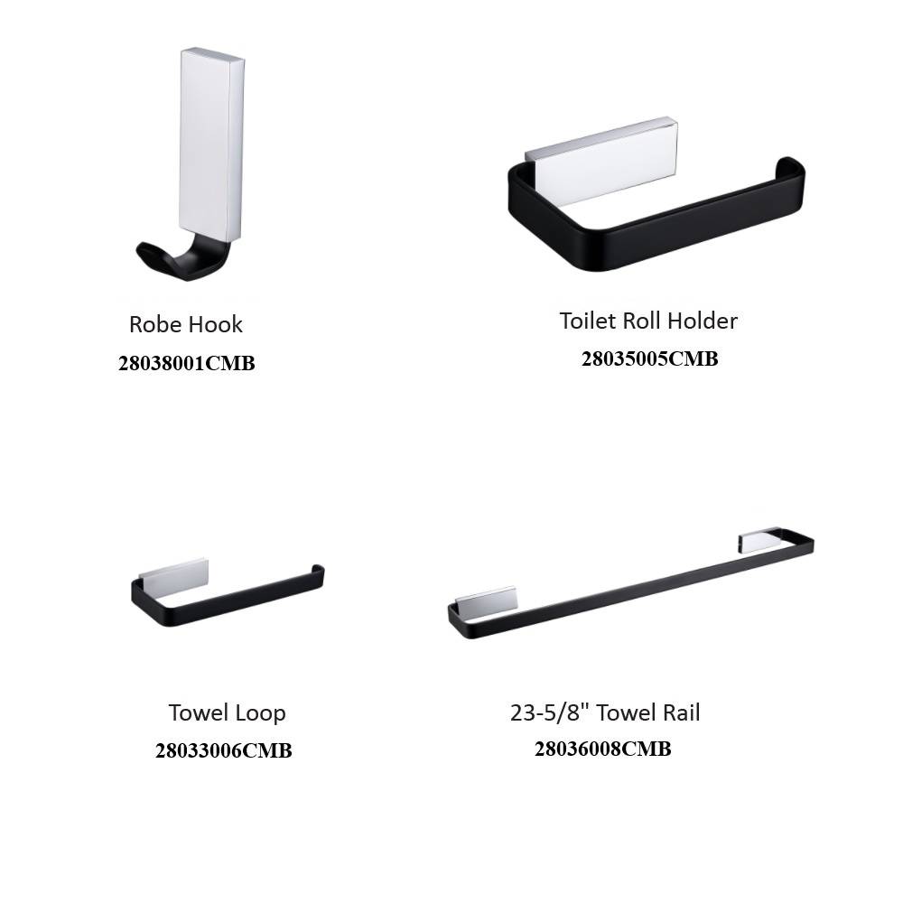 Robe Hook 28038001CMB, Toilet Roll Holder 28035005CMB, Towel Loop 28033006CMB, 23-5/8" Towel Rail 28036008CMB
