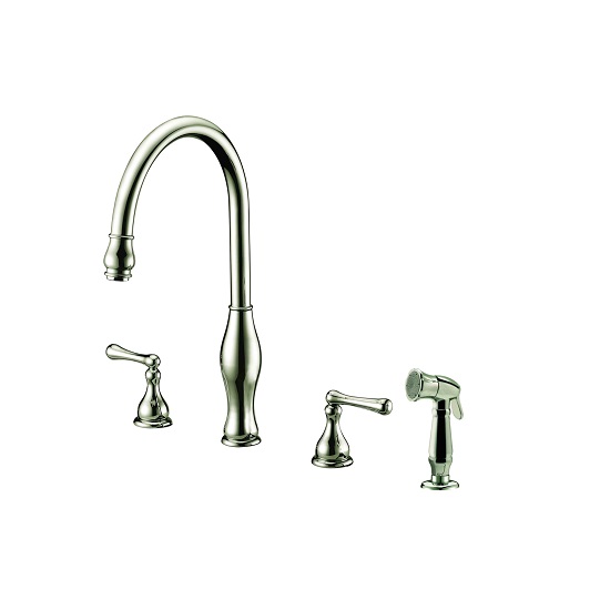 Dawn 8" Centerset Widespread Kitchen Faucet with Two Lever Handles and One Side Spray, Brushed Nickel