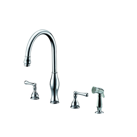 Dawn 8" Centerset Widespread Kitchen Faucet with Two Lever Handles and One Side Spray, Chrome