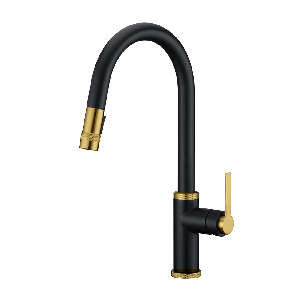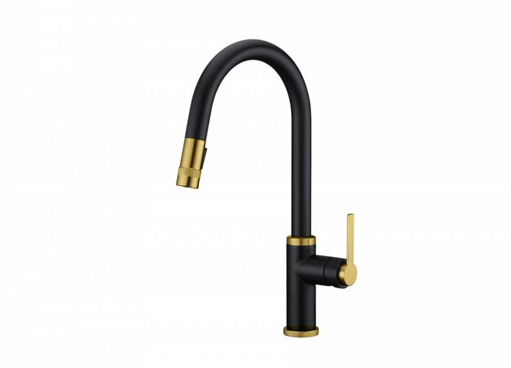 Dawn Single-Lever with Two Functions Pull-out Spray Kitchen Faucet, Spot Free Gold & Matte Black