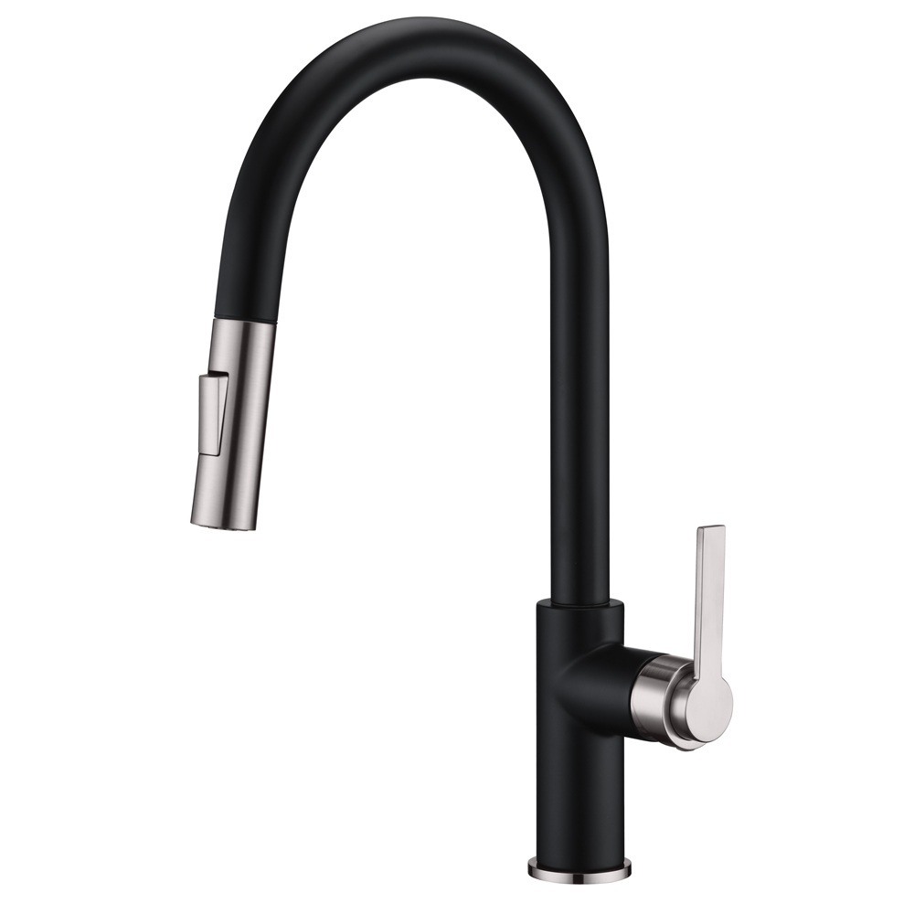 Dawn Single-Lever with Two Functions Pull-out Spray Kitchen Faucet, Brushed Nickel & Matte Black