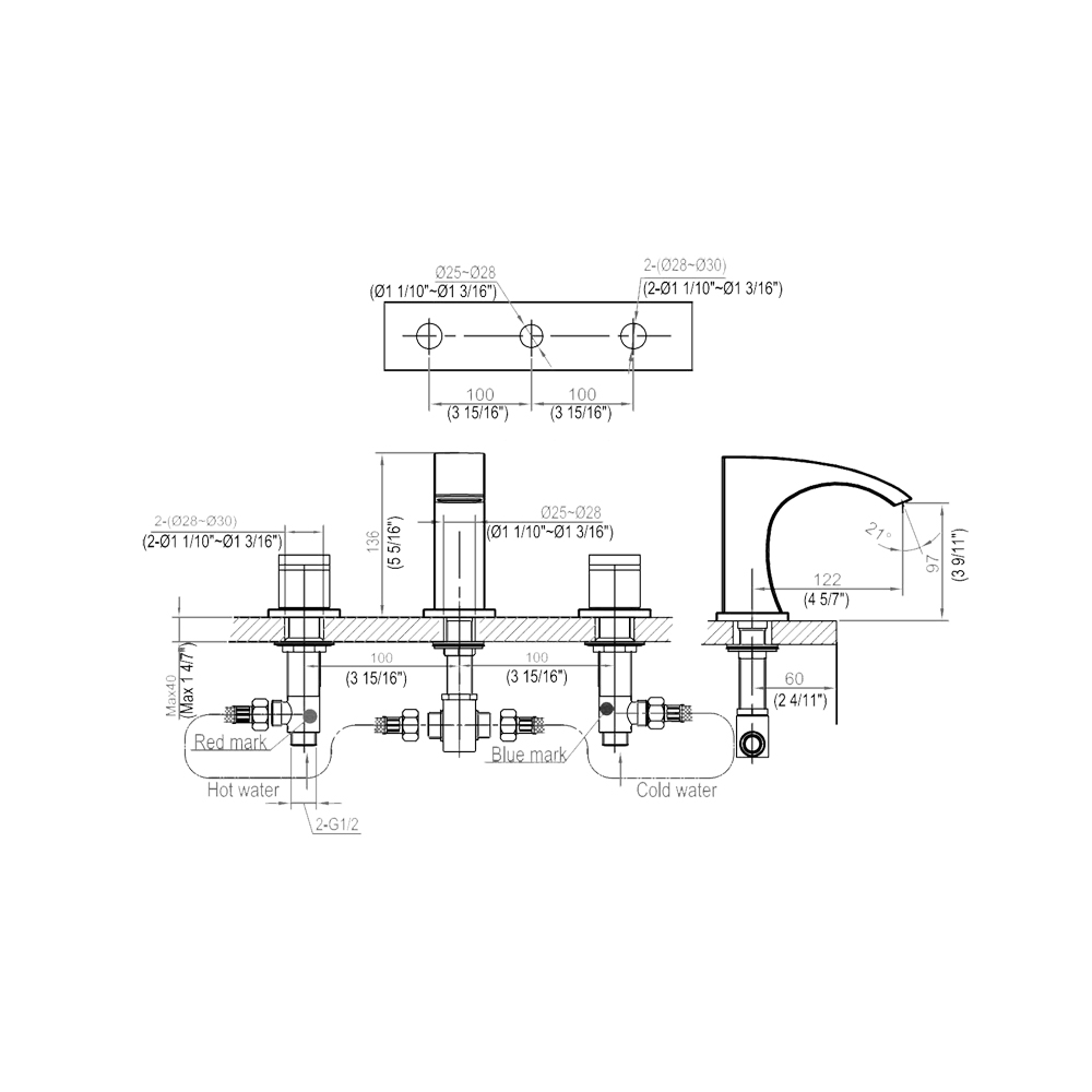 Dawn 8" Centerset Widespread Lavatory Faucet with Two Square Handles, Chrome