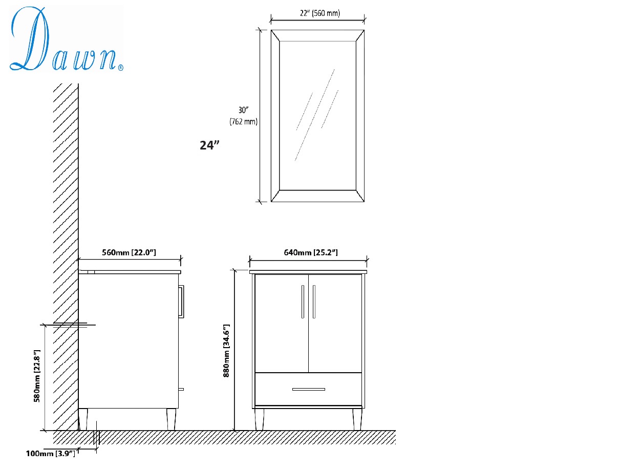 Dimensions: 24-1/4"L x 21-3/4"W x 34"H