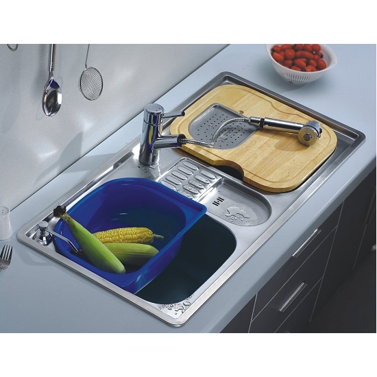 Dawn Equal Double Bowl Topmount Sink with Integral Drain Board