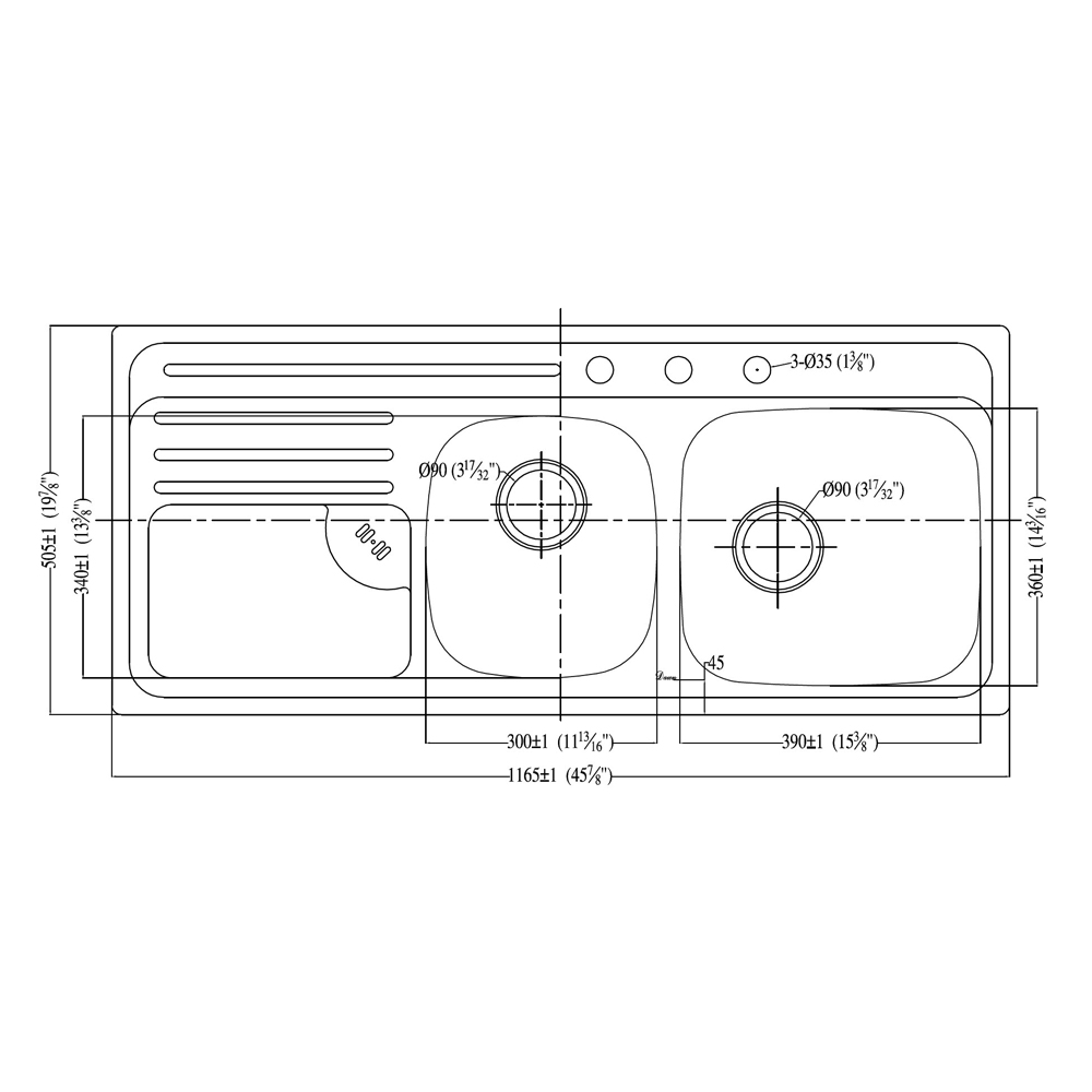 Drain Opening: 3-1/2"