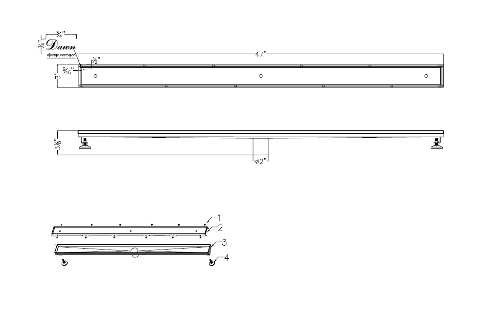 Dawn Colorado River Series Tiler Insert Shower Linear Drain, 47"