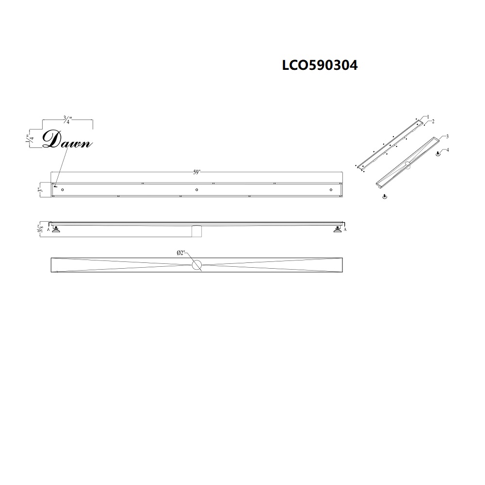 Dawn Colorado River Tile Insert Series Shower Linear Drain, 59"