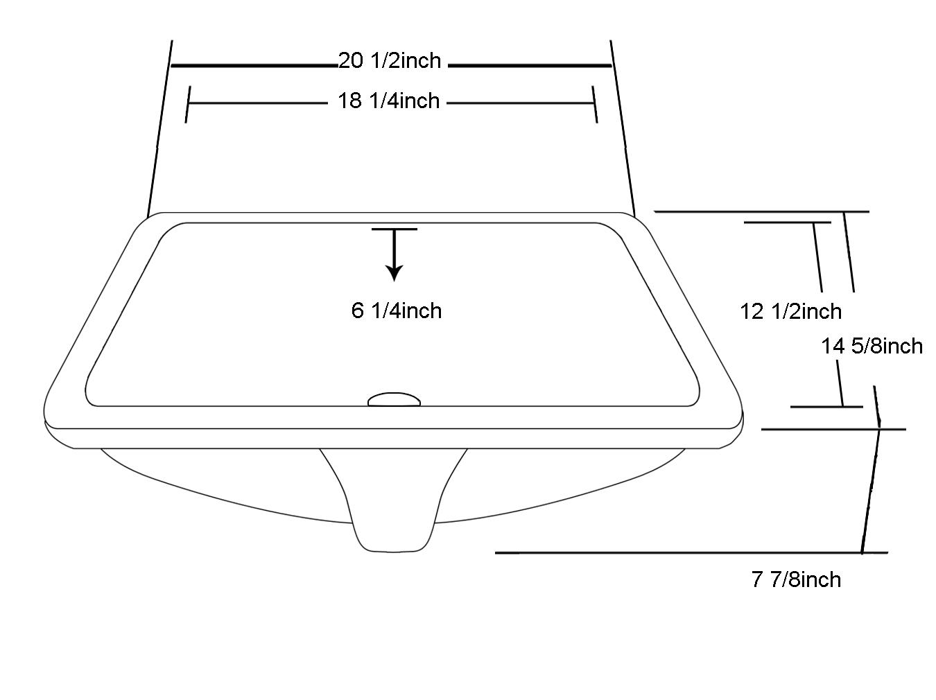 Dawn® Under Counter Rectangle Ceramic Basin with Overflow (Cutout Template Included)