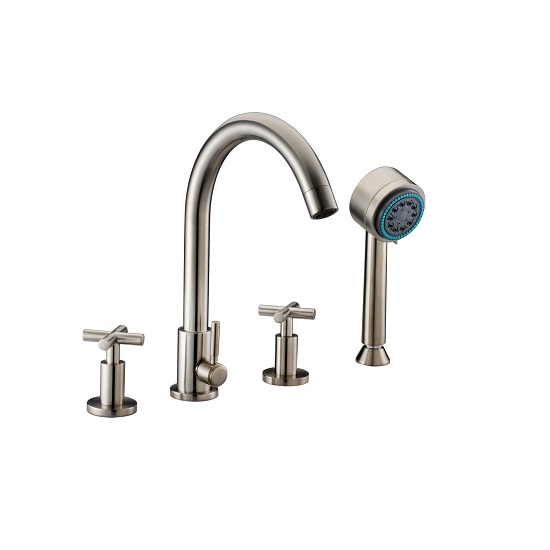 Dawn 4-Hole Tube Filler with Personal Handshower and Cross Handles, Brushed Nickel