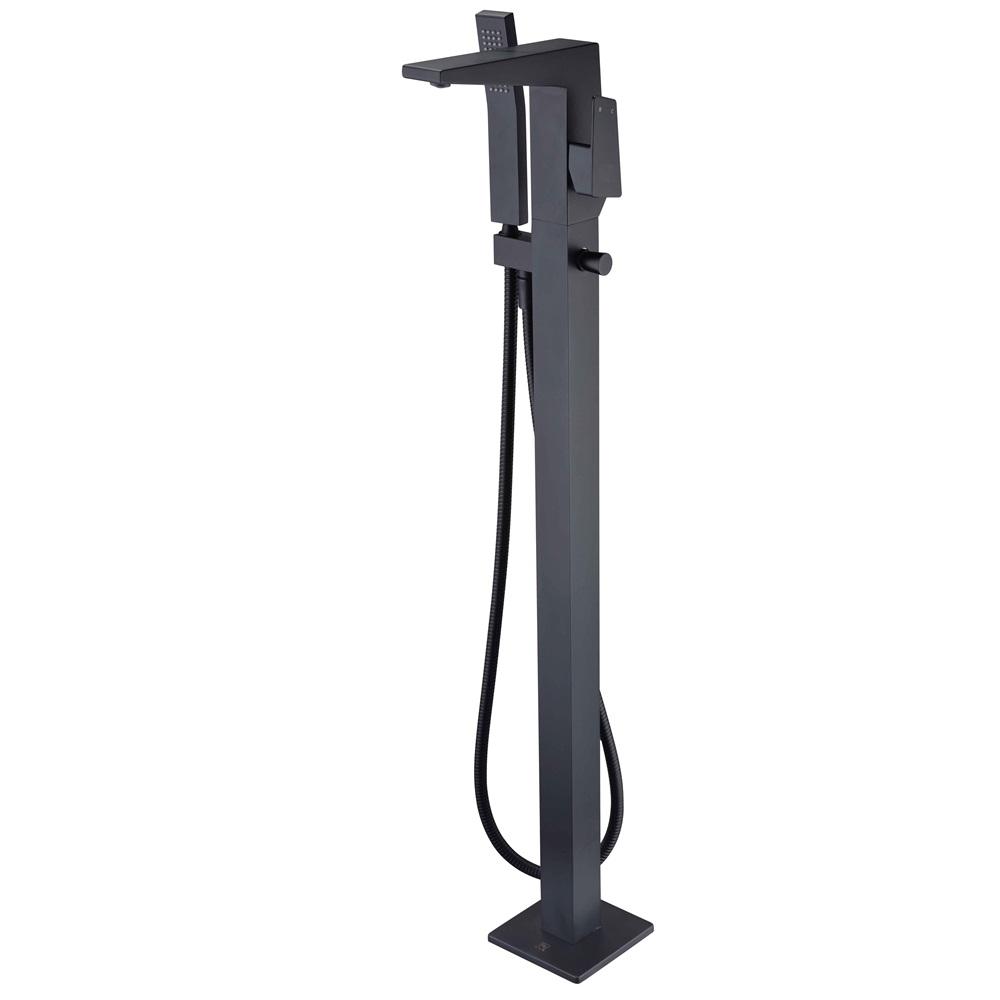 Dawn Floor Mount Freestanding Bathtub Filler Faucet with Hand Held Shower, Matte Black