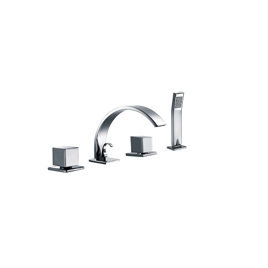 Dawn 4-Hole Tube Filler with Personal Handshower and Square Handles and Sheetflow Spout, Chrome