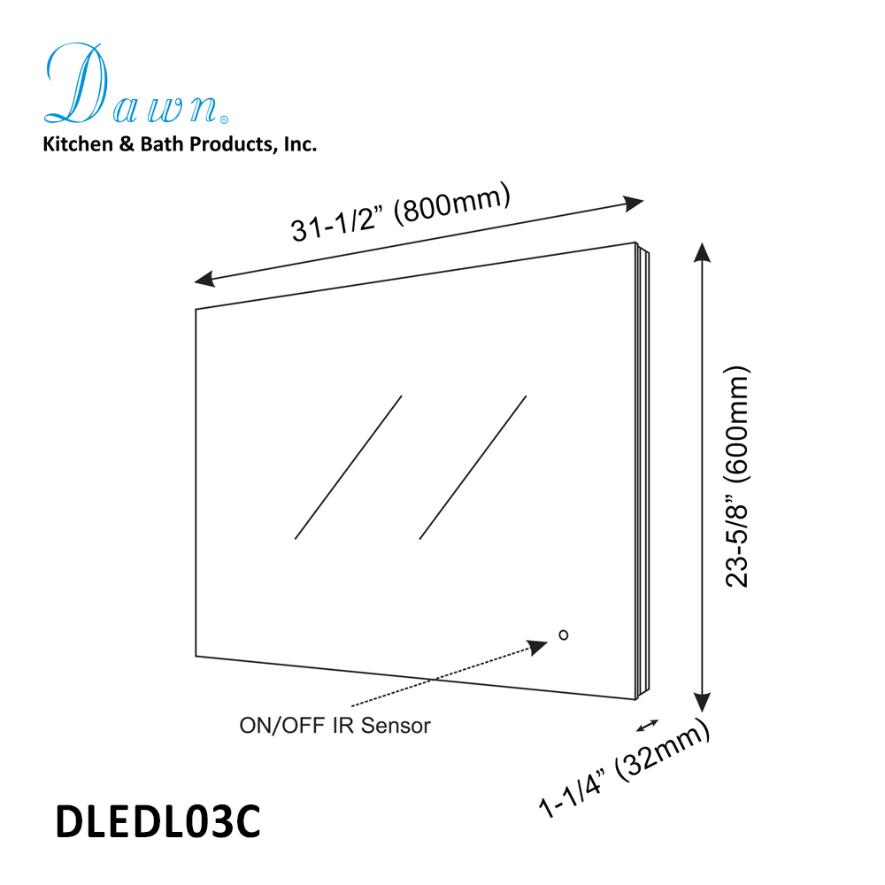 Dawn LED Back Light Mirror wall hang with matte aluminum frame and Touch Sensor