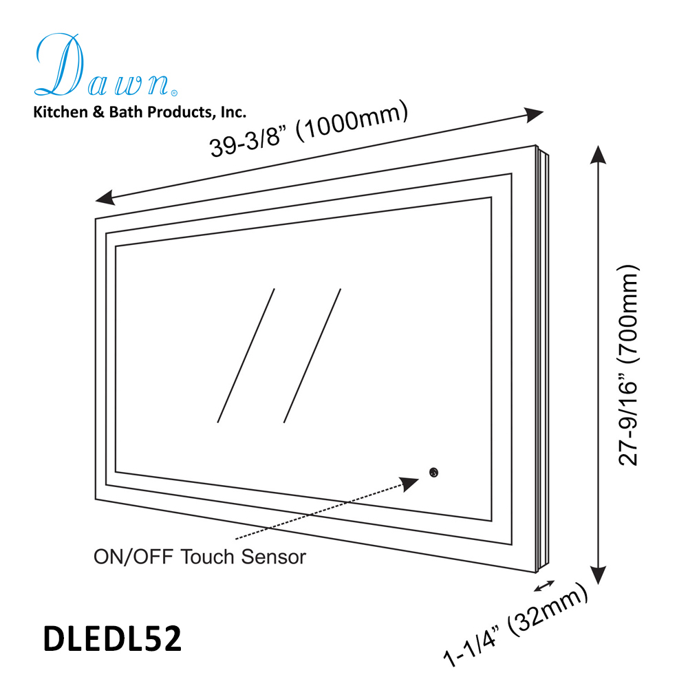 Dawn LED Back Light Mirror wall hang with matte aluminum frame and Touch Sensor