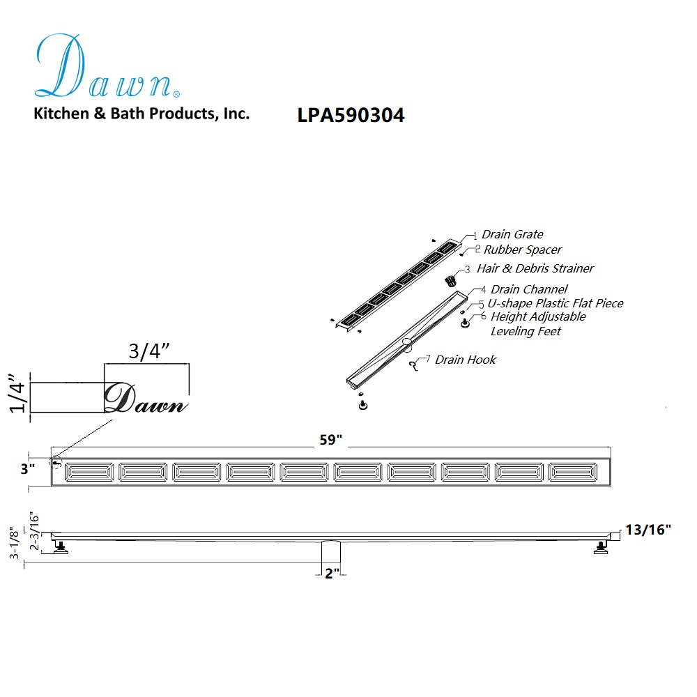 Overall Size: 59"L x 3"W x 3-1/8"D