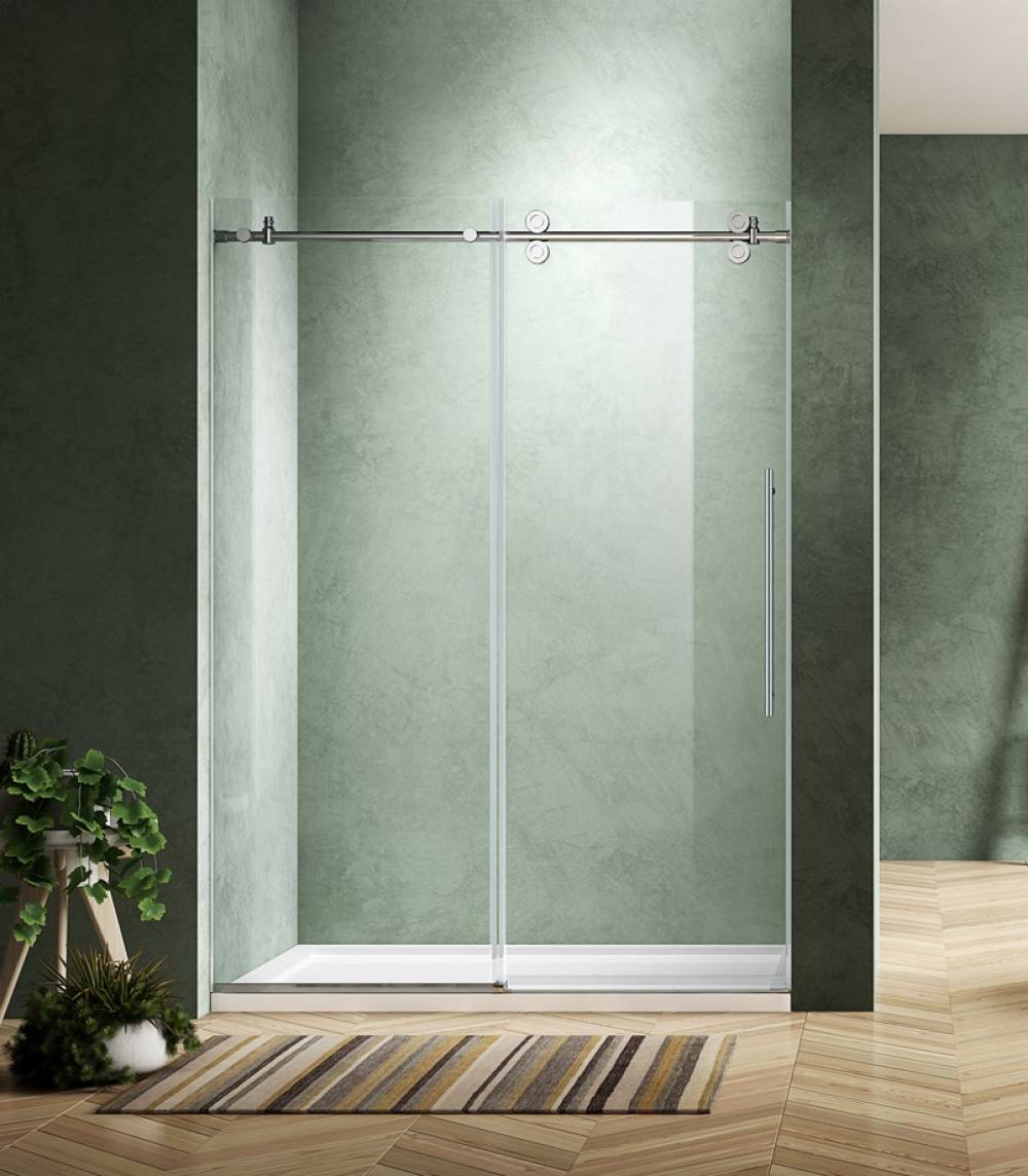 Dawn Frameless, Single Sliding Shower Door in Clear Glass.