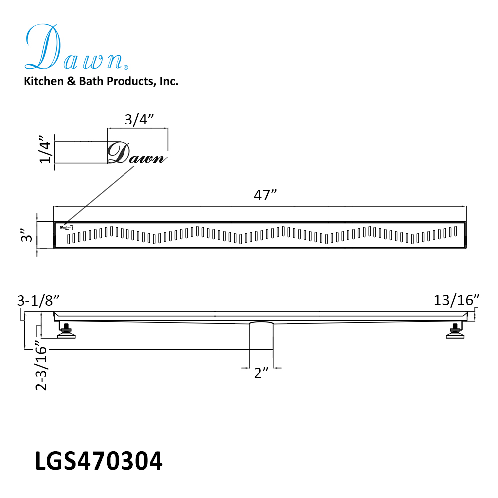 Overall Size: 47"L x 3"W x 3-1/8"D