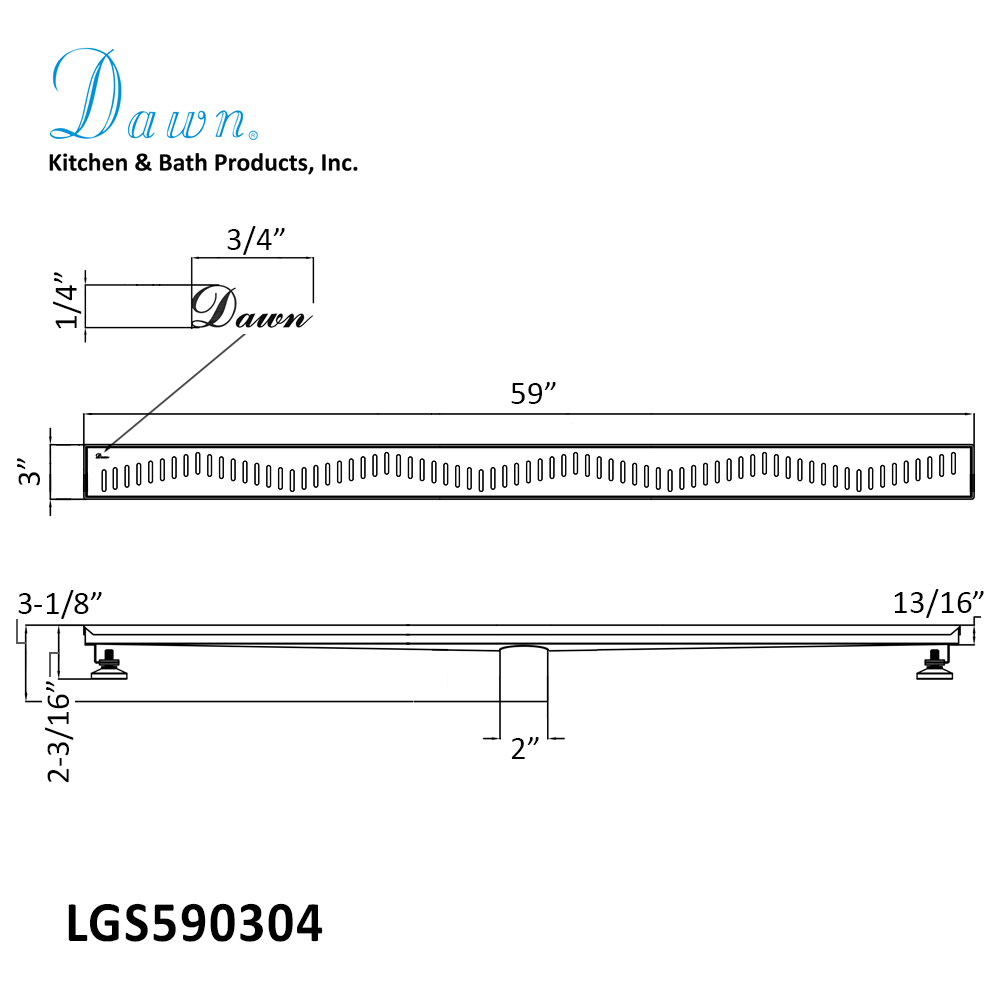 Overall Size: 59"L x 3"W x 3-1/8"D