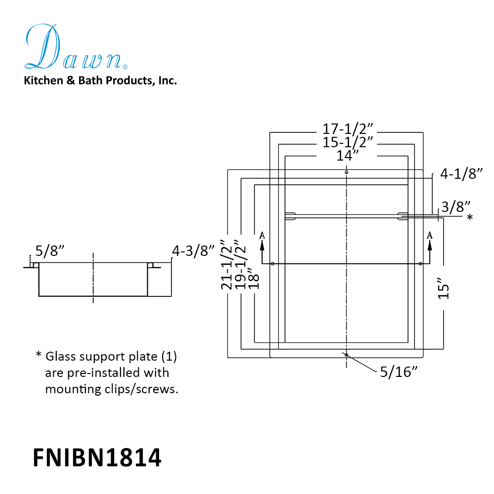 One glass shelf (NIGS1404) included with mounting clips & screws
