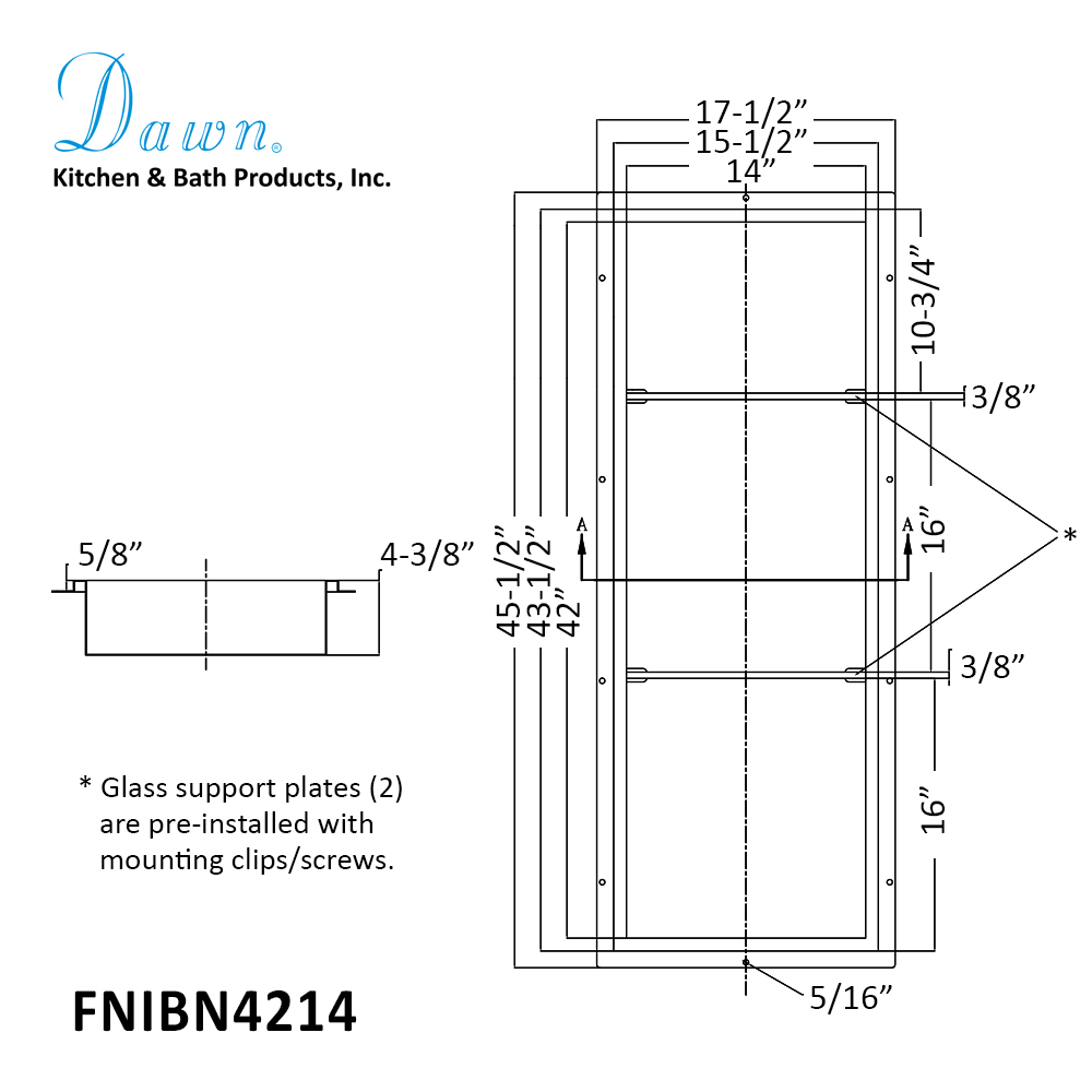 Overall Dimensions: 17-1/2"L x 45-1/2"W x 4-3/8"D