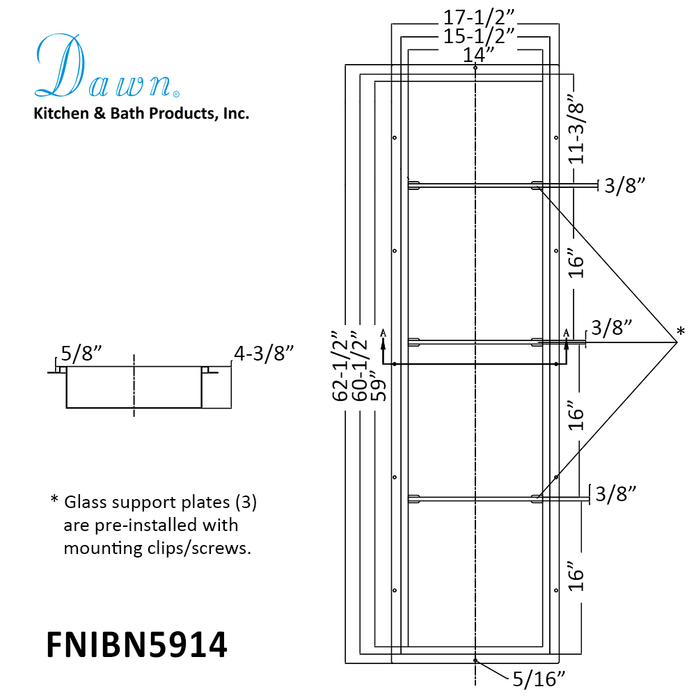 Overall Dimensions: 17-1/2"L x 62-1/2"W x 4-3/8"D