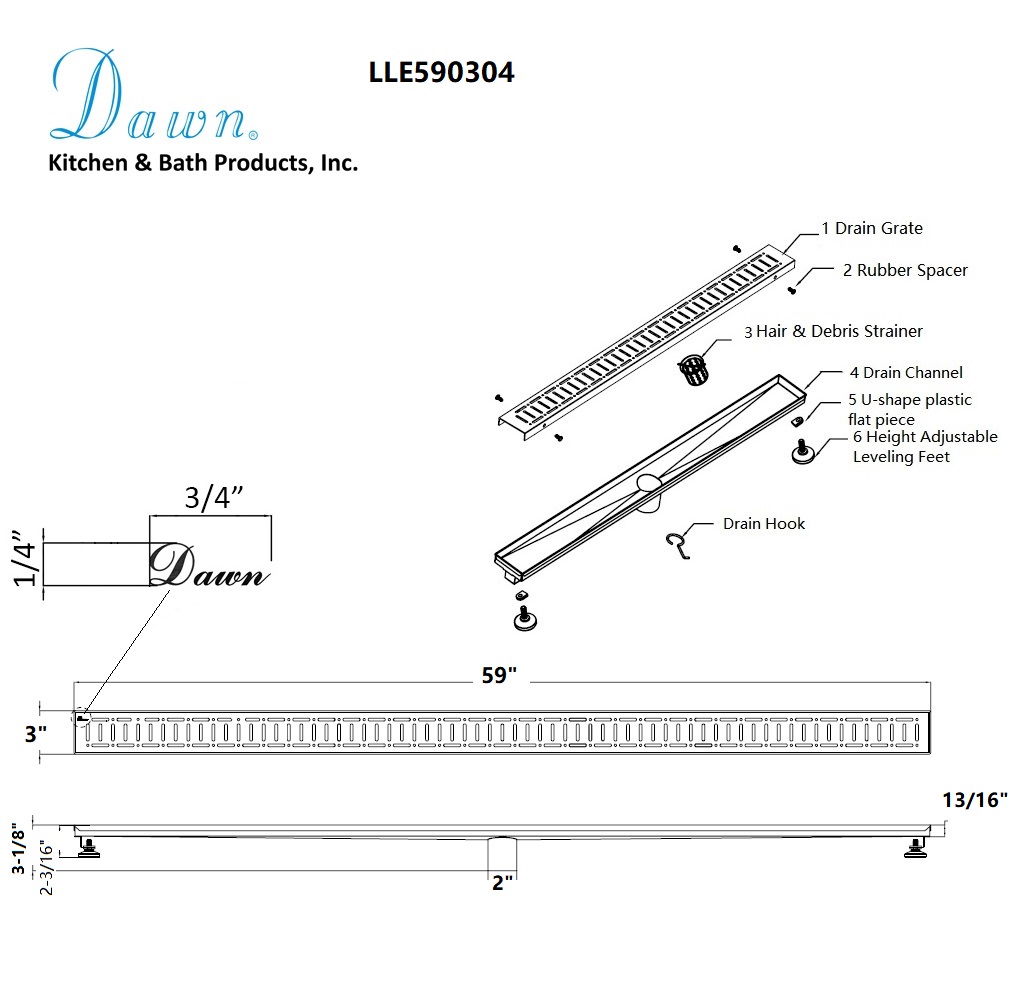 Overall Size: 59"L x 3"W x 3-1/8"D