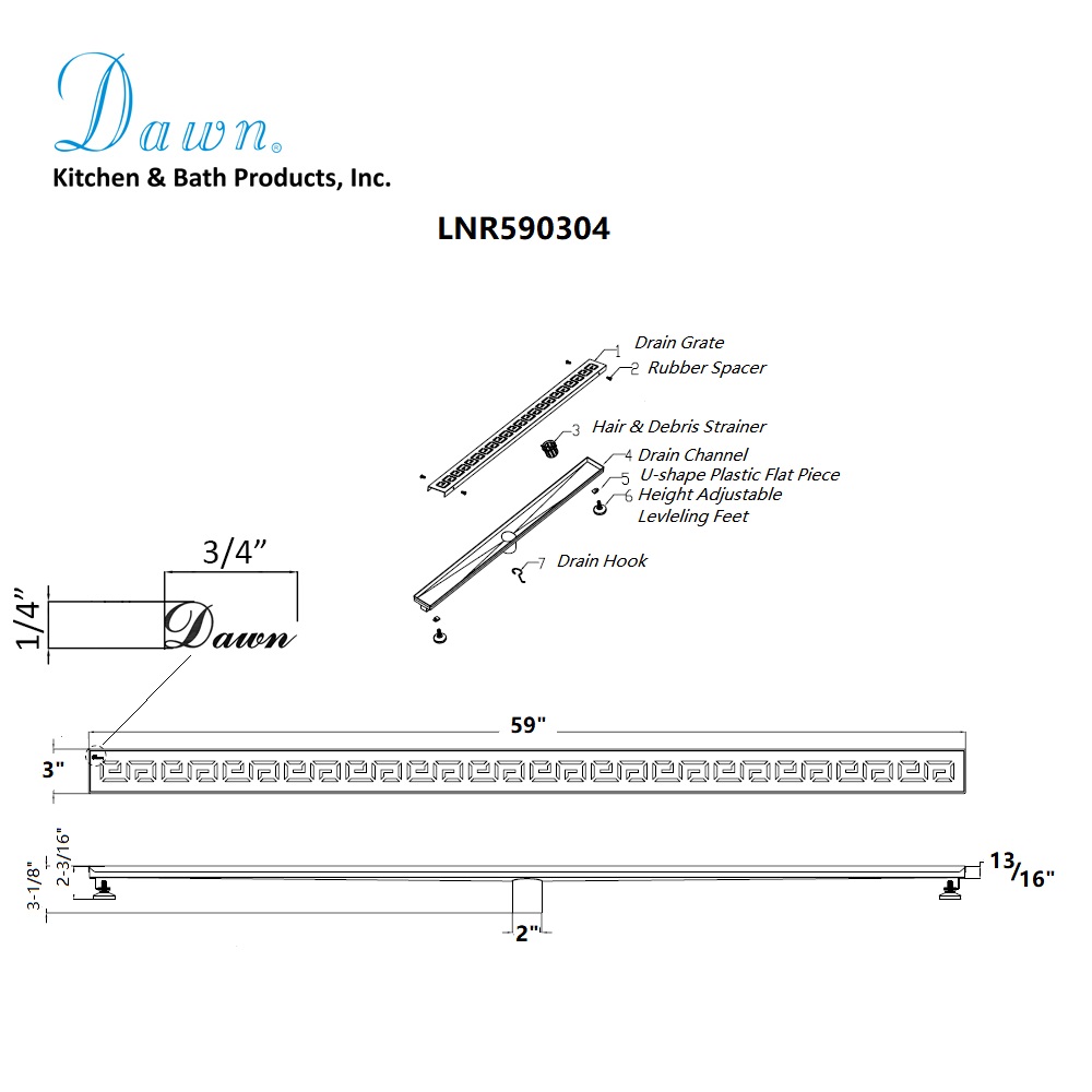 Overall Size: 59"L x 3"W x 3-1/8"D