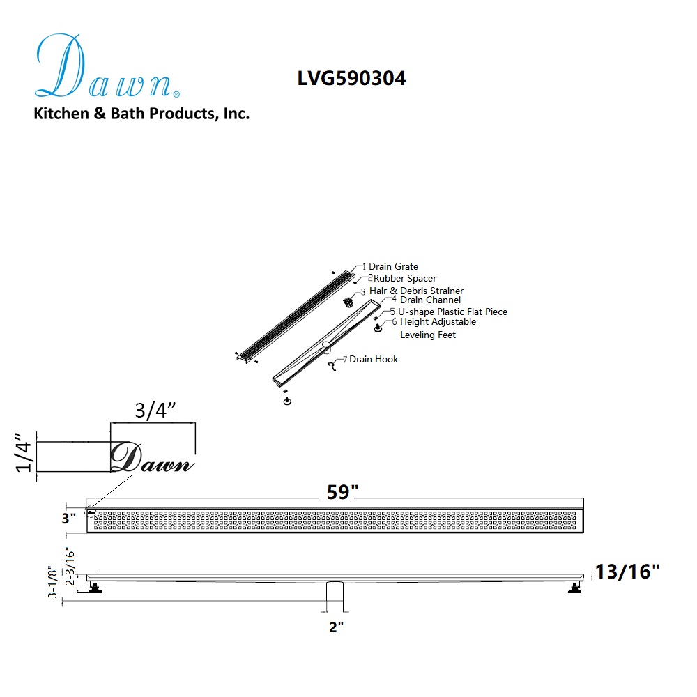 Overall Size: 59"L x 3"W x 3-1/8"D